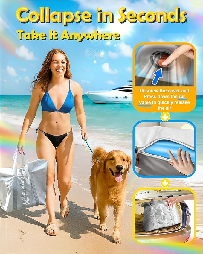 - ใ๐๐ซ๐ข๐ ๐ก๐ญ, ๐๐๐ญ-๐ ๐ซ๐ข๐๐ง๐๐ฅ๐ฒ ๐๐จ๐ฅ๐จ๐ซ๐ฌ & ๐๐๐ฌ๐ฒ ๐๐ญ๐จ๐ซ๐๐ ๐ใ: The bright yellow and blue colors make this floating dog ramp easy for pets to spot, giving them confidence while using it. The ramp weighs just 13.6 lbs, making it lightweight and easy to carry. It can be inflated in 5 minutes using the included hand pump, and when not in use, it folds neatly into a compact size, ready to be stored in the included storage bag for convenience.