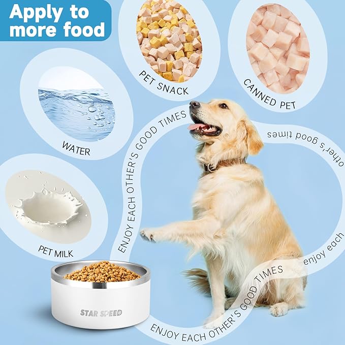 - 【Non-slip and No spill】 StarSpeed dog water bowls are weighted dog bowls with non-slip rubber rings. These designs prevent dog bowls from slipping and food and water spills. This feature is especially beneficial when using it as a dog food bowl or a large dog bowl