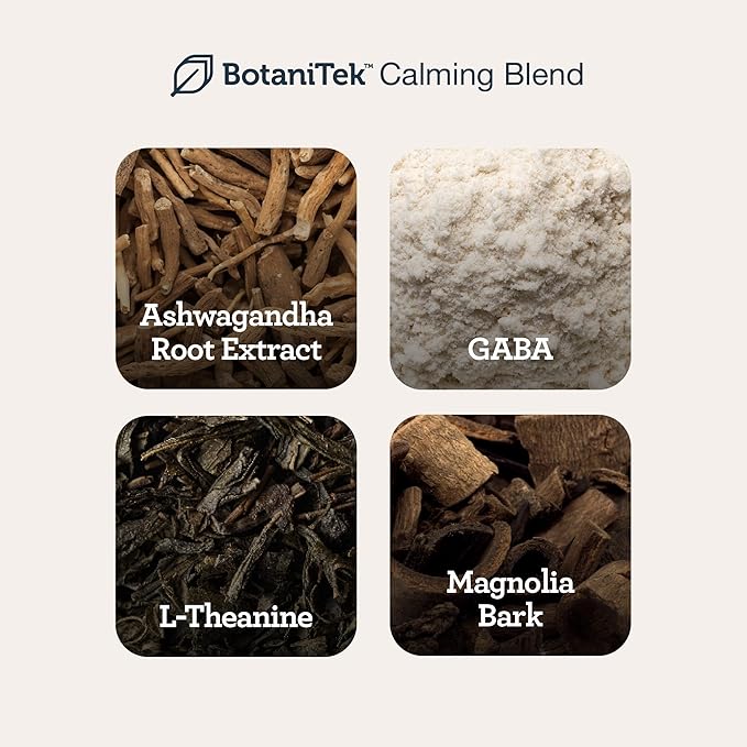 - POWERED BY BOTANITEK CALMING BLEND – Formulated with Ashwagandha, Chamomile, L-Theanine, GABA, and Passion Flower, this scientifically backed blend helps regulate stress levels and promote relaxation.