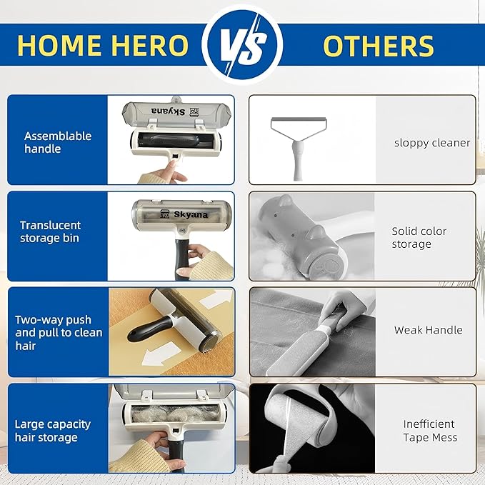 - self-cleaning design: Features an easy-to-use button mechanism that retracts collected pet hair into a built-in waste compartment for quick disposal