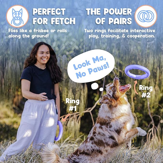 - The power of pairs: Our Active Rings come in a set of two to revolutionise training and play, particularly for tug and fetch. Having two training toys of equal value open up opportunities for an abundance of interactive games and exercises. Whether you have multiple dogs who love to play together or you simply want to have a backup on hand, our dual pack ensures that the fun never has to stop.