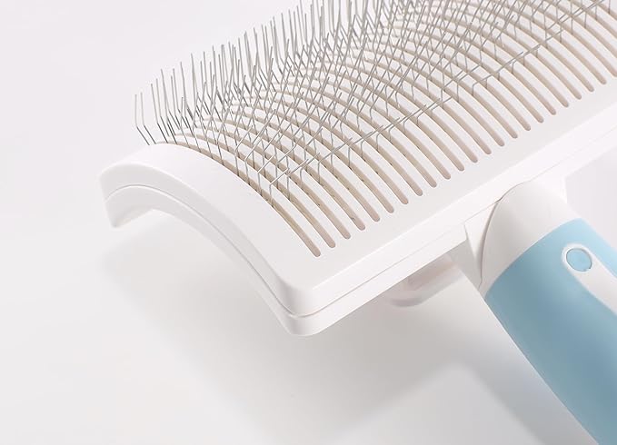 - Self-Cleaning Convenience-Equipped with a release button, this self-cleaning brush allows you to effortlessly remove hair from the retractable wire pins with just a push. Perfect for medium or long-haired dogs, it simplifies cleanup and saves time.