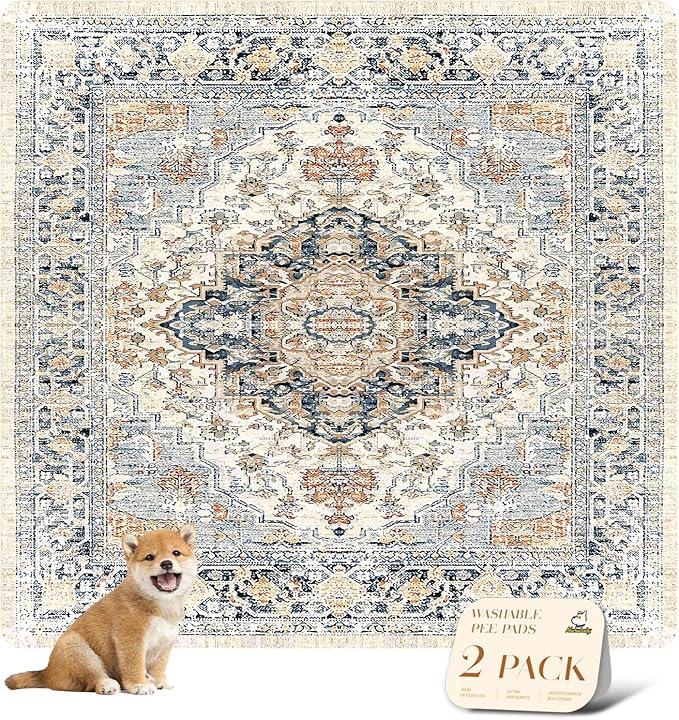nunubaby 2PACK Washable Pee Pads for Dogs, Stylish, Non-Slip and Leak-Proof Pee Pads. Reusable Potty Pads for Dogs for Crates and Floors.(Beige/Multi, 72" x72")