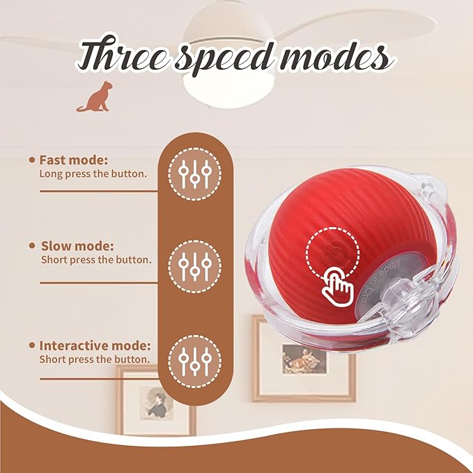 - Automatic Motion Activation: Features an electronic ball that starts moving with a simple touch, sparking your pet’s interest. The toy offers 3 speed modes (fast, slow, and random) to adapt to your cat’s play style and energy level. It automatically flips between speeds for variety, providing continuous mental and physical stimulation without human intervention.