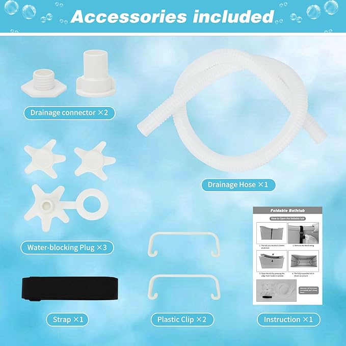 - Efficient drainage system: Are you still draining by pouring the bathtub? This large dog bathtub only needs to turn the drain valve to easily drain water, and the drain valve very easy to plug in; And the collapsible bathtub does come with a 3.6ft drain hose, so you can more conveniently and quickly drain water to terraces, gardens, courtyards etc,c