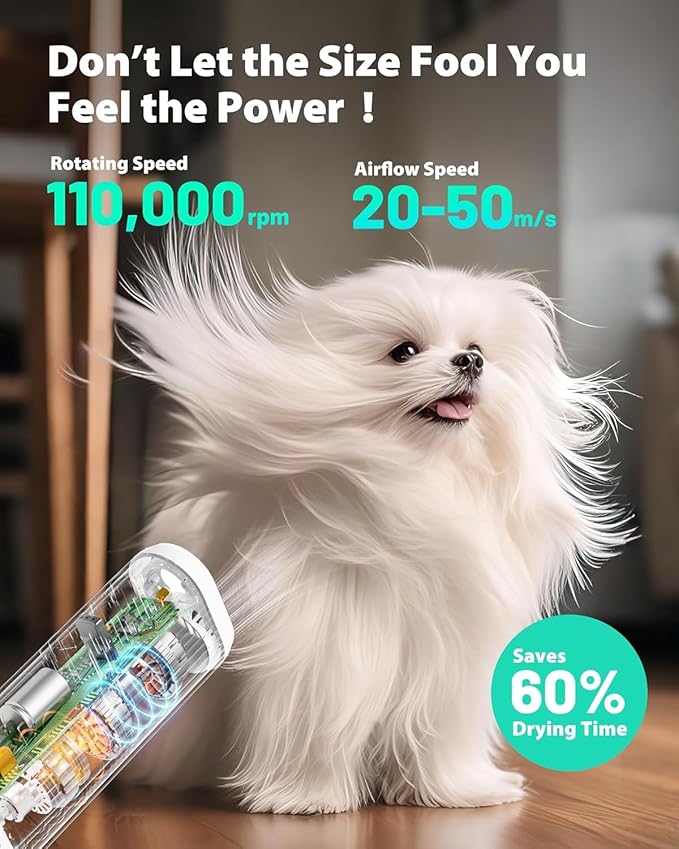 - Portable, Lightweight & Pet-Sized: Perfectly sized for small to medium pets, this compact dryer travels easily and stores effortlessly — ideal for home grooming, salon use, or taking with you on the go.