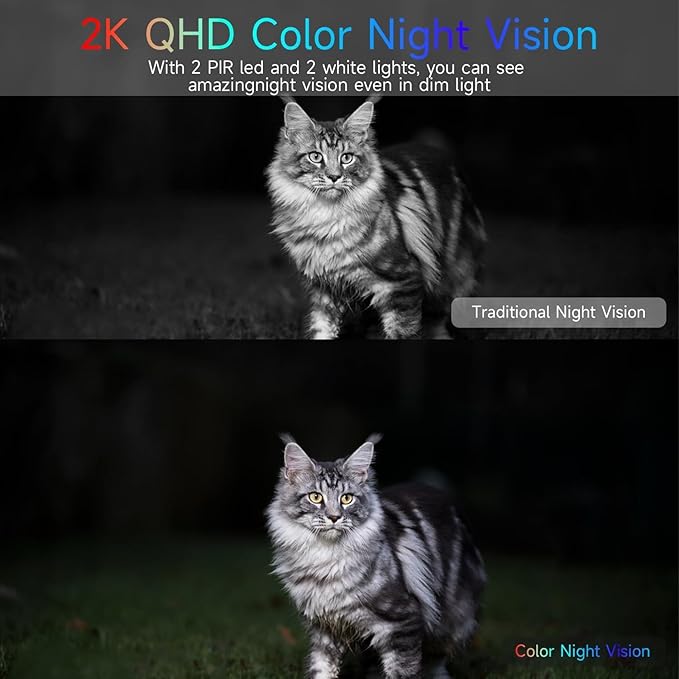 - 【2K Resolution, Day and Night Clarity】Capture every event that occurs around your home in 3MP resolution. More than just daytime, 3 LED lights increase the light source by 100% compared to 2 LED lights, allowing more to be seen for excellent color night vision.
