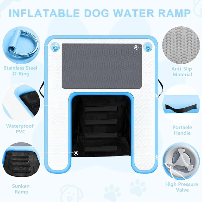 Inflatable Dog Boat Ramp Water Ramp for Pool, Float Floating Dog Ramps with Anti-Slip EVA for Lakes, Boats, Docks