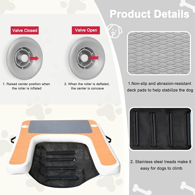 - Easy to Climb: The mesh ramp design of the dog dock is convenient for dogs to climb, and the anti slip EVA pad helps stabilize the dog's body