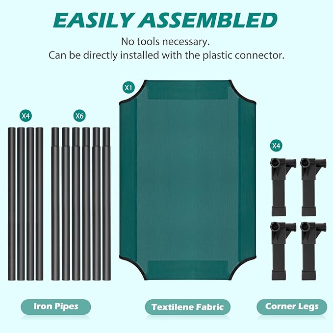 • Easy to Install: The cooling dog cot can be installed without the use of any tools, screws and can be installed directly with the plastic connector. It only takes a few minutes of your time, and presto. It's up and ready for your pet to enjoy in. Perfect for any indoor space or outdoor adventure.