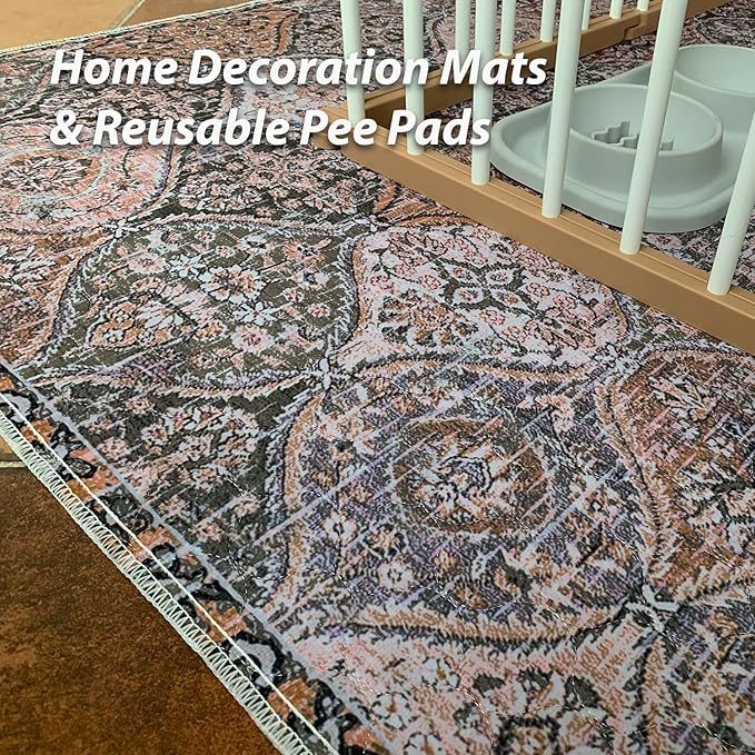 nunubaby Washable Pee Pads for Dogs, Stylish, Non-Slip and Leak-Proof Pee Pads. Reusable Potty Pads for Dogs for Crates and Floors.(Brown/Multi, 72" x72")