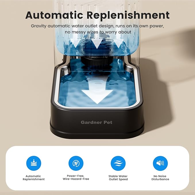 - Silent, Spill-Proof Design - Gravity water feeder is Motor-free operation ensures silent water dispensing. Anti-tip square base stays steady during play, while advanced filtration keeps water fresh.