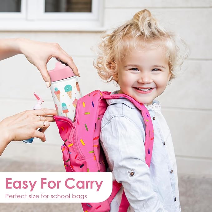 Ice Cream Kids Water Bottle With Straw Lid 12oz Insulated Stainless Steel, Travel Tumbler, Gifts For Girls, Birthday, Christmas, Back To School