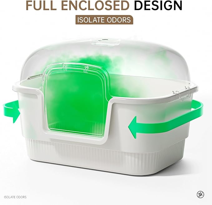 - Durable material: Crafted from BPA-free and recyclable plastic, this kitty litter box provides long-lasting durability.Made of high quality PP material,, odorless, non-stick bottom, sturdy and durable.This enclosed litter box provides your cat a private space, offering a comfortable area to do their business in peace.