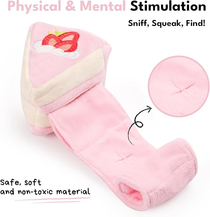 - Durable and Comfortable: Designed to entertain and stimulate your dog’s natural instincts, this strawberry cake puzzle toy is tough and bite-resistant while remaining soft to the touch, ensuring long-lasting fun and engaging playtime