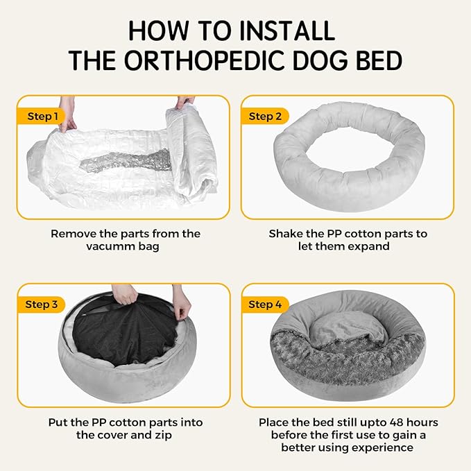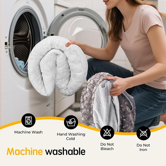 - MACHINE WASHABLE: Dog bed with removable washable cover for easy cleaning,this cave dog bed allows you to wash the outer cover in cold water and dry it on low heat. The internal filling can remain unwashed for regular care, but if needed, the entire bed can be washed as a whole. Note: Due to vacuum packaging, the bed may appear compressed simply allow it to sit for a while to regain its full shape before use