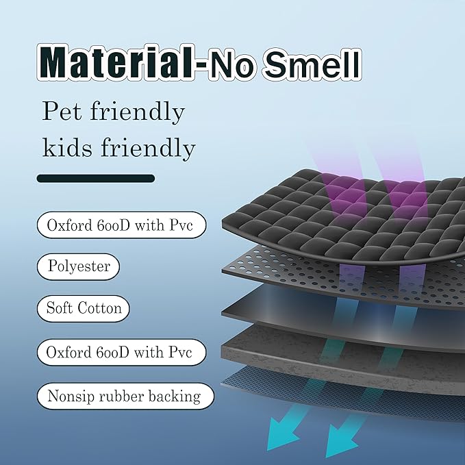 - 【Material & Non-Slip】 Made of high-quality, odorless 600D Oxford fabric (pet-safe certified)Features non-slip backing + adjustable headrest & seat anchors Secures mat firmly in place during travel