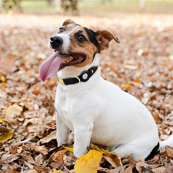 - LEATHER AIRTAG DOG COLLARS – Designed with a secure AirTag holder (AirTag not included), this leather collar lets you monitor your dog’s location — perfect for active pups and outdoor adventures. Crafted from soft, flexible leather that’s gentle on your dog’s skin, yet tough enough for everyday use. Keeps your pet comfortable while adding a touch of classic style.