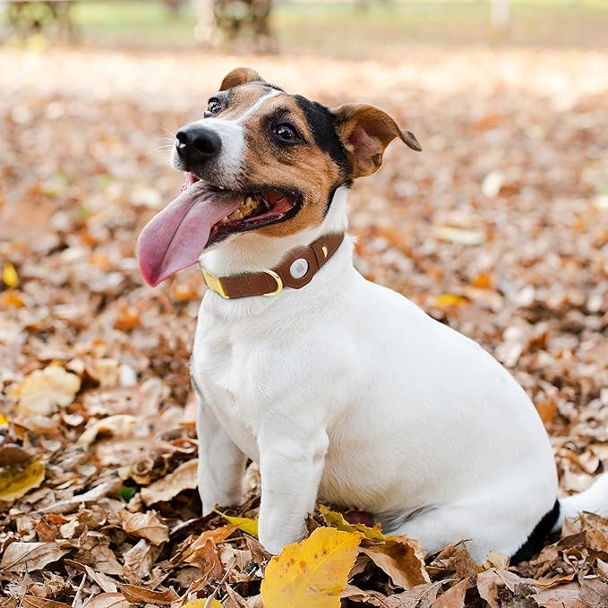 - LEATHER AIRTAG DOG COLLARS – Designed with a secure AirTag holder (AirTag not included), this leather collar lets you monitor your dog’s location — perfect for active pups and outdoor adventures. Crafted from soft, flexible leather that’s gentle on your dog’s skin, yet tough enough for everyday use. Keeps your pet comfortable while adding a touch of classic style.