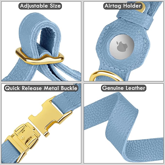 - LEATHER AIRTAG DOG COLLARS – Designed with a secure AirTag holder (AirTag not included), this leather collar lets you monitor your dog’s location — perfect for active pups and outdoor adventures. Crafted from soft, flexible leather that’s gentle on your dog’s skin, yet tough enough for everyday use. Keeps your pet comfortable while adding a touch of classic style.