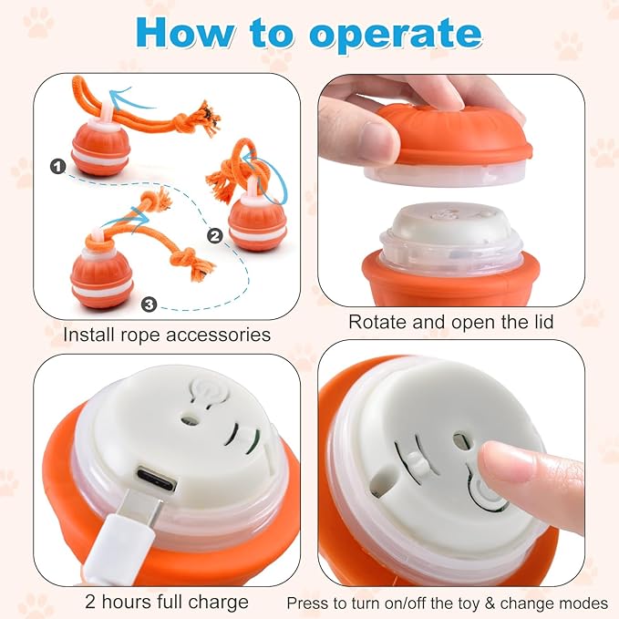 - Touch-Activated Activation: Our interactive dog toys for small dogs works automatically for 5 minutes after power on, then enters standby mode. Moving dog toy built-in motion sensor.When your dogs pokes or bites it, this moving dog ball will automatically start moving. it can stimulates your dog's curiosity and exploration, and give your dog exercise.