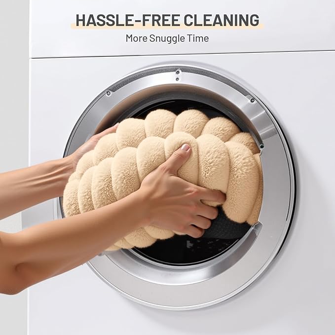 - Machine-Washable - Effortless Cleaning for Busy Pet Parents:Unlike bulky pet caves that are hard to clean, our fluffy cat bed is fully machine-washable, saving you time and hassle. Toss it in the washer, and it comes out looking fresh and fluffy—ready for more cuddle sessions. Plus, the vibrant color-block design stays fade-resistant, keeping it picture-perfect for your Instagram-worthy pet moments.