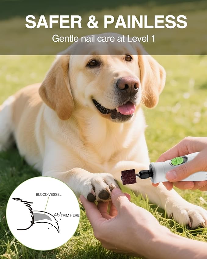 • 2000mAh BATTERY & LED DISPLAY: Up to 130 mins of use on Level 1, the dog nail file provides precise nail care. LED display screen shows speed for easy setting selection