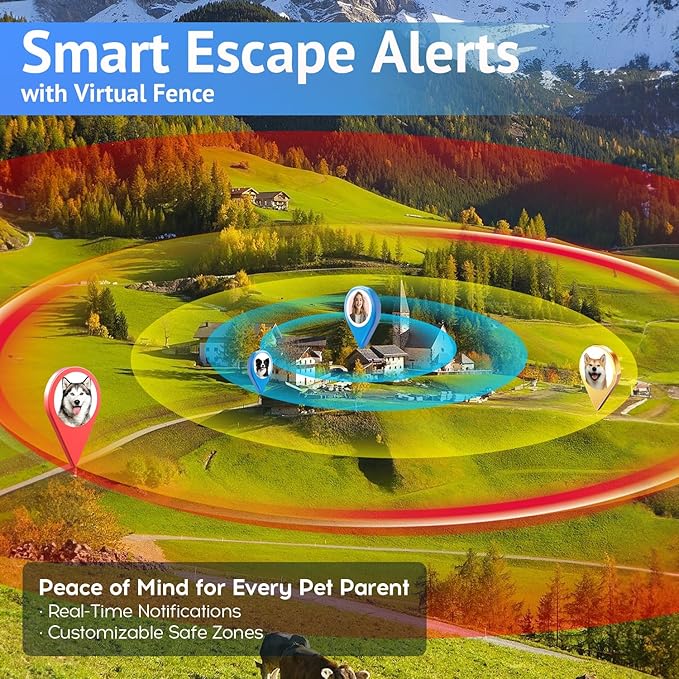 - With the innovative virtual fence feature, you can create safe zones for your pets and receive instant alerts if they wander outside the designated area. This added layer of security lets you rest assured