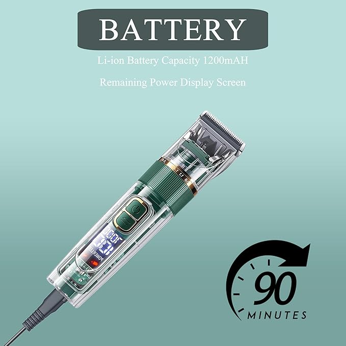 - 90-Min Runtime & Smart LCD Display 1200mAh scissors battery powers 1.5 hours of cordless grooming; built-in LCD screen tracks real-time battery life for worry-free sessions.