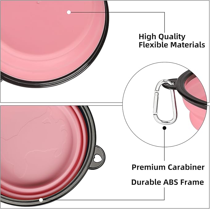 Kytely Large Collapsible Dog Bowls 2 Pack, 34oz Foldable Dog Travel Bowl, Portable Pet Water Food Bowl with Clasp, Pet Cat Feeding Cup Dish for Traveling, Walking, Hiking (Pink+Purple)