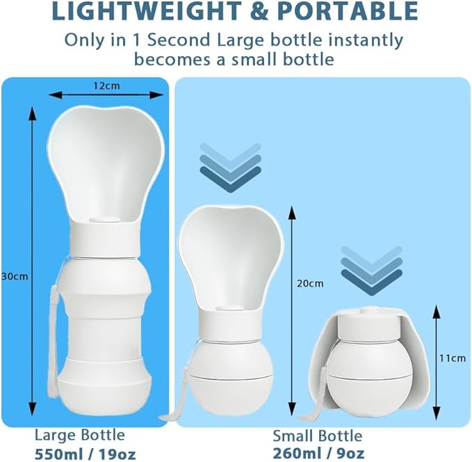 - Large Capacity for All Dogs: 19oz / 550ml capacity ensures enough water for small, medium and large breeds. Perfect for long walks, hikes, or road trips without frequent refills.