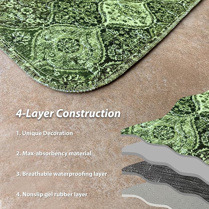 nunubaby Washable Pee Pads for Dogs, Stylish, Non-Slip and Leak-Proof Pee Pads. Reusable Potty Pads for Dogs for Crates and Floors.(Green/Multi, 31" x36")