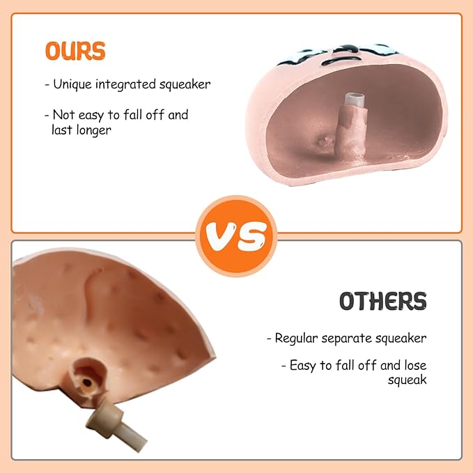 - Engaging Squeak Toy: The built-in squeaker makes a funny squeaking sound to draw your dogs' curiosity, provide mental stimulation and endless entertainment, which makes playtime more exciting and keeps dogs busy to reduce destructive chewing. To ensure your pet’s safety and long-lasting playing, the squeaker is reinforced and not easy to fall out.
