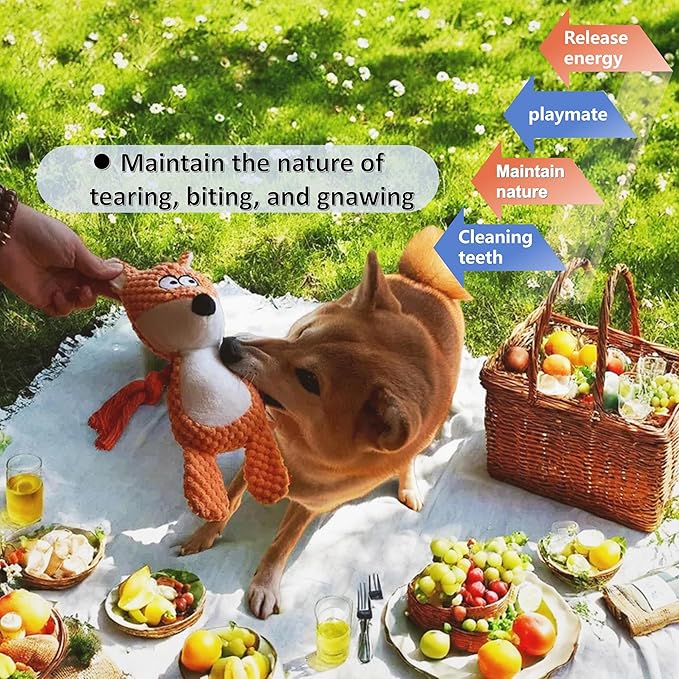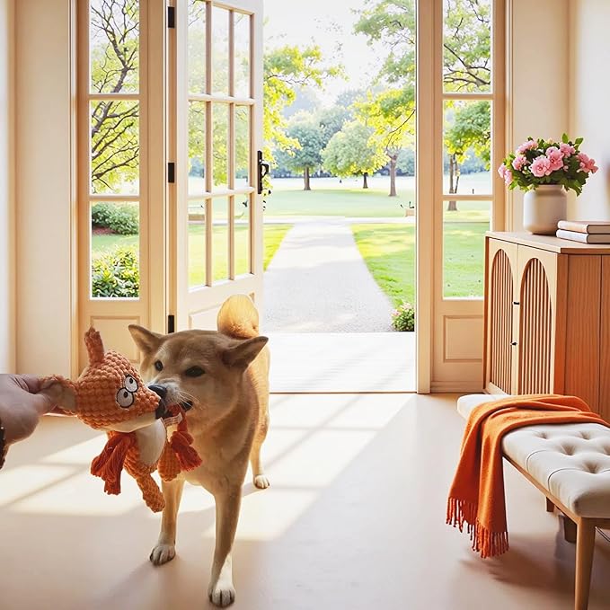 - Plush Interactive Toys: Your pup will love this cute FOX plush that makes realistic squeaky and crinkle sounds when chewed! Perfect for keeping dogs engaged, reducing anxiety, and preventing furniture destruction.
