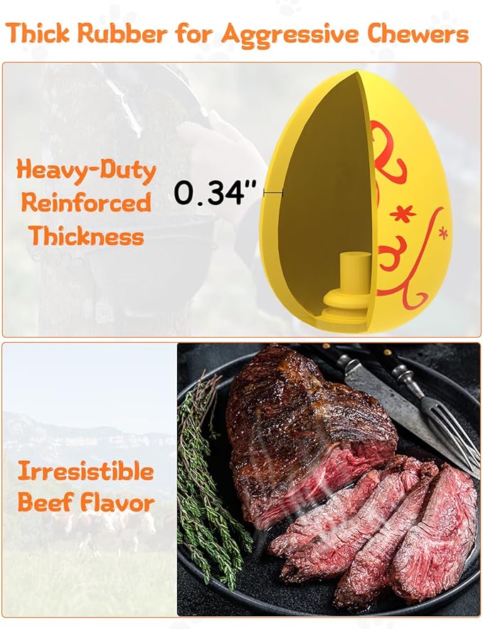 - Irresistible Beef Flavor: Infused with a beef scent, this ball is naturally appealing to dogs, encouraging them to carry, toss, and play with it more. The flavor adds an extra layer of excitement, keeping their interest piqued during long play sessions.