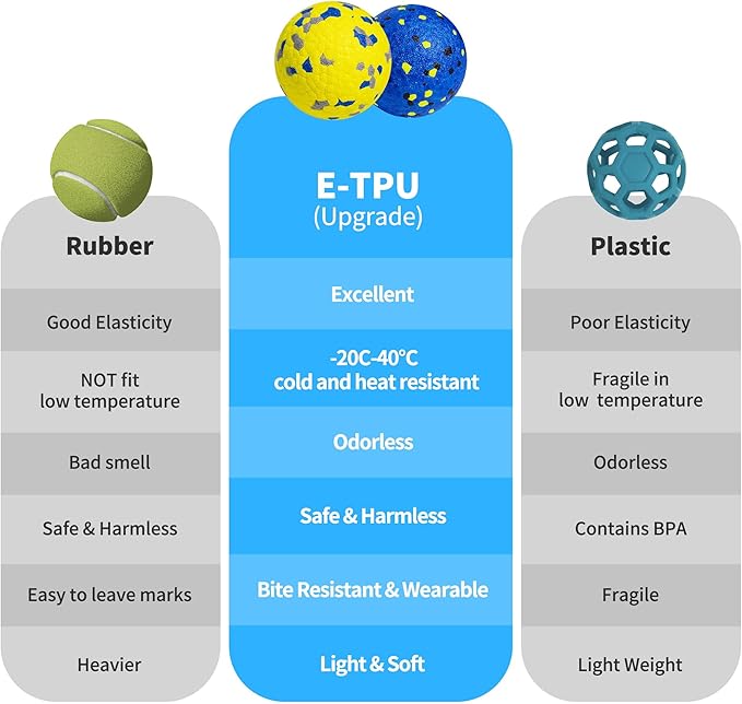 - đăFloating & Durable Outdoor Dog ToysăLightweight and buoyant, these dog balls are perfect for fetch in water, grass, or beach, or backyard fetch. Made from non-toxic, pet-safe E-TPU material with no harmful chemicalsâgentle on your dog's teeth and gums. Always supervise play to ensure your pet's safety!