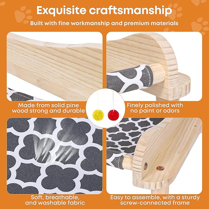 - Simple Assembly – Tools Included This wooden cat hammock frame is connected with strong screws and assembles quickly in just a few steps. Disassemble easily when needed for storage or travel—perfect for both home and outdoor cat bed use