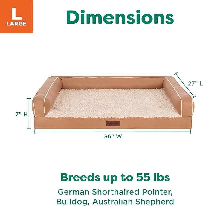 FurHaven Orthopedic Dog Sofa Bed – Memory Foam Couch with Bolsters, Textured Plush & Water-Resistant Cover, Washable Cover, Joint Support - Camel, Large
