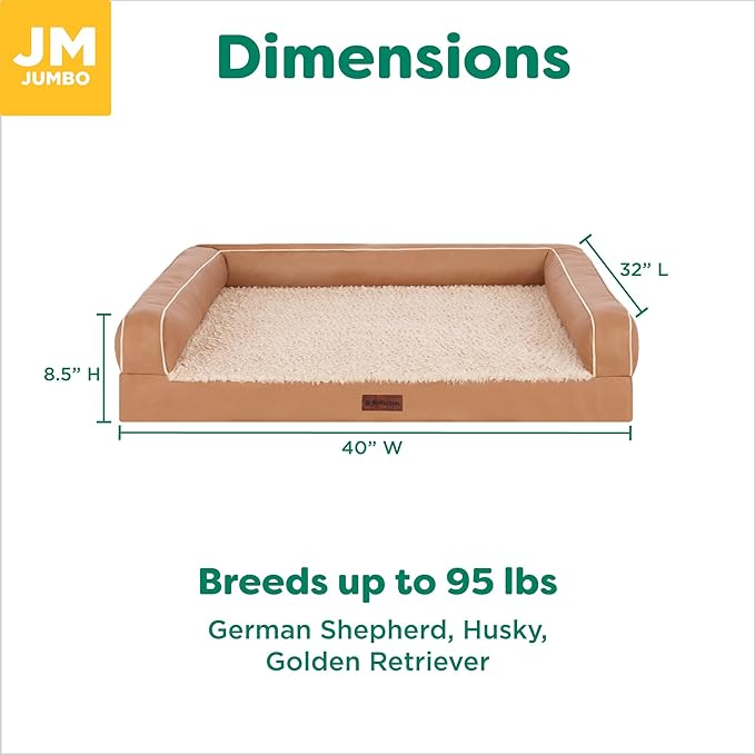 FurHaven Orthopedic Dog Sofa Bed – Memory Foam Couch with Bolsters, Textured Plush & Water-Resistant Cover, Washable Cover, Joint Support - Camel, Jumbo
