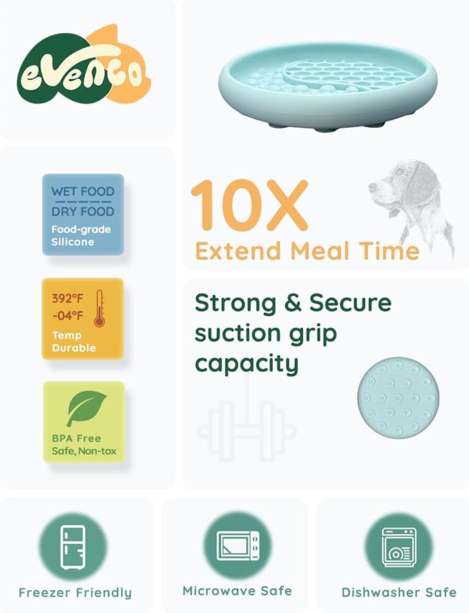 - FOOD-GRADE SILICONE: Made from durable, non-toxic silicone, our slow feeder bowl ensures safety for your pets while providing a fun and engaging eating experience. The sturdy material is lightweight for travel, easy to clean, and safe for the top rack of your dishwasher (avoid heated dry cycle).