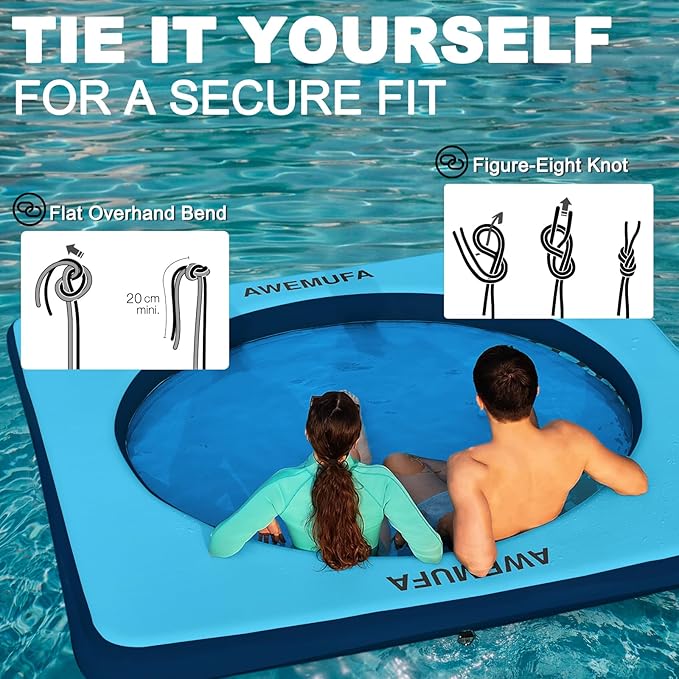 - ATTENTION TO DETAIL FOR MESH DOCK: Ideal for lakes, beaches, or pools, our floating dock offers a stable surface for sunbathing, swimming, and water sports. Please note: before use, retighten the elastic ropes of the floating dock with mesh, and in case of loose connections, secure them with a square knot or an eight knot. The black soft tube at the end of the ropes may naturally detach but will not affect functionality