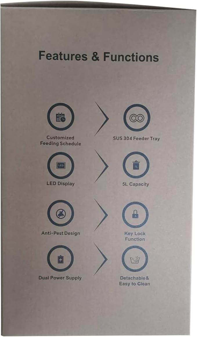 - 5L Large Capacity – Ideal Cat Food Dispenser for Multi-Pet Homes: With a 5L storage tank, this cat food dispenser ensures up to 20 days of worry-free feeding for one cat. The patented chute design prevents clogs and ensures smooth food delivery every time.