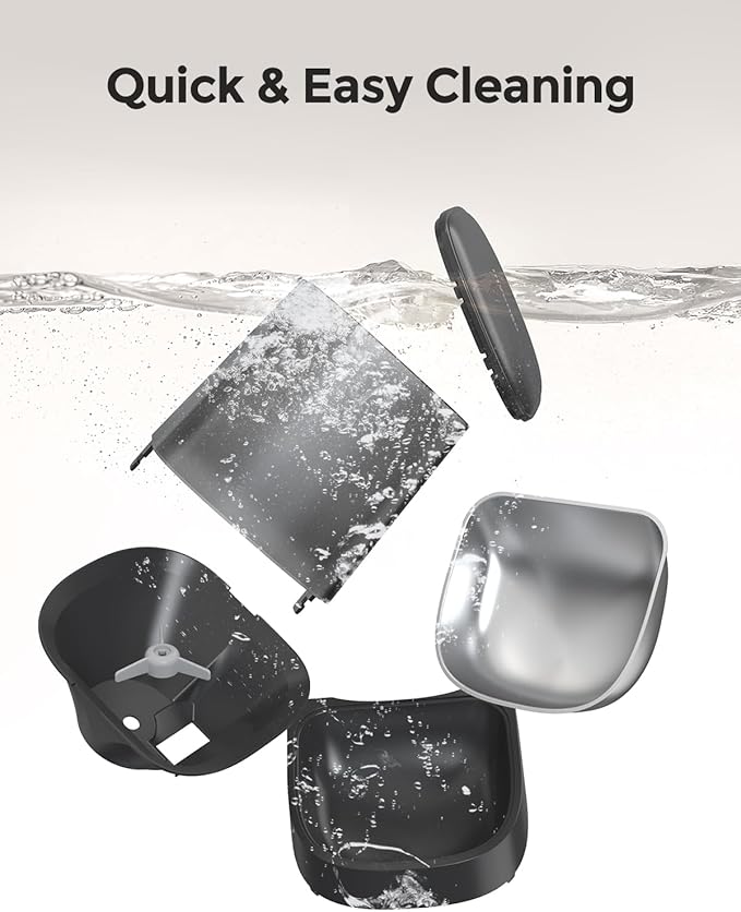 - Hygienic & Easy to Clean – SUS304 Stainless Steel + BPA-Free ABS: Built with high-quality SUS304 stainless steel and BPA-free ABS plastic, this automatic feeder is durable, pet-safe, and easy to disassemble. The food bowl and container are washable to maintain freshness and prevent bacteria buildup.