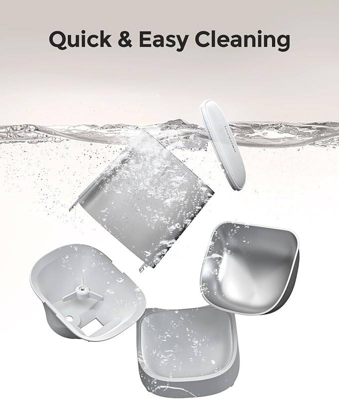 - Hygienic & Easy to Clean – SUS304 Stainless Steel + BPA-Free ABS: Built with high-quality SUS304 stainless steel and BPA-free ABS plastic, this automatic feeder is durable, pet-safe, and easy to disassemble. The food bowl and container are washable to maintain freshness and prevent bacteria buildup.