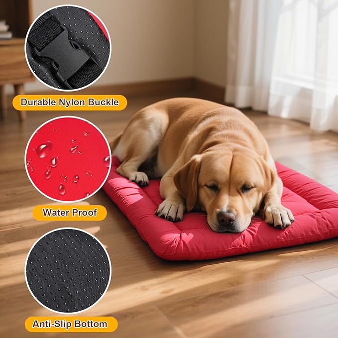 - Stable & Stylish Comfort: Non-slip backing keeps pets secure on tile/wood floors. Choose from Red, Blue, or Gray to match your home décor while providing plush cushioning.