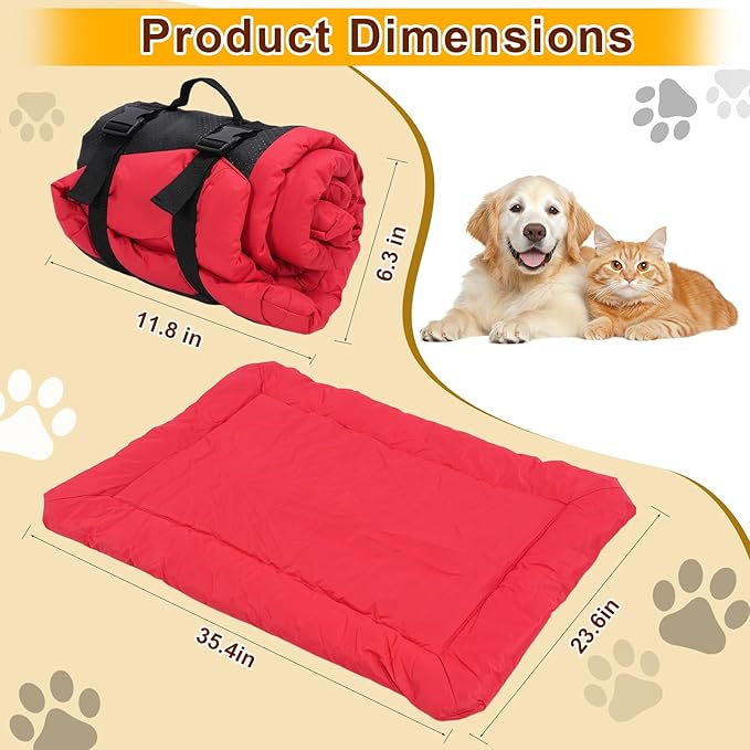Foldable Waterproof Outdoor Dog Bed – Portable Travel Mat for Camping, Machine Washable Pet Bed for Small to Medium Dogs, Indoor & Outdoor Use(Red)