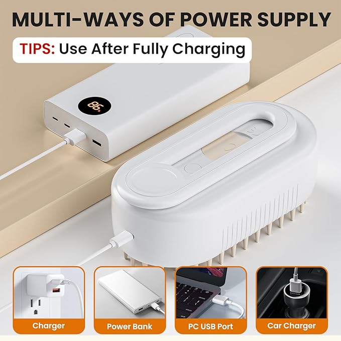 - đ±ăPremium Safety & DurabilityăCrafted with reinforced ABS and food-grade silicone, this cat steam brush ensures gentle yet effective grooming. The triple anti-scalding protection and soft TPR massage bristles stimulate follicles and improve blood circulation. Its quiet operation ensures your pet stays calm and relaxed, turning every grooming into a soothing experience.