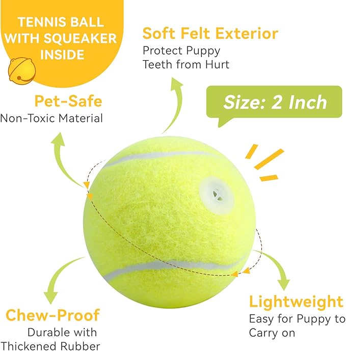 - Endless FUN: Let the dogs have fun with the mini tennis Balls! Throwing, chasing, biting, picking up the ball... The endless running allows the furry children to burn off energy while embracing their wild side, grow up healthily while playing