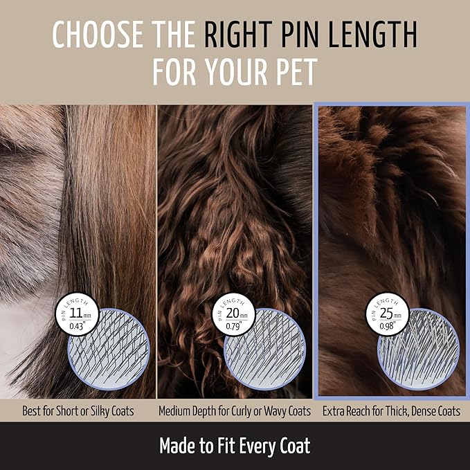 - Untangles Thick Coats Without Pain: Our dog brush for long haired dogs gently works through dense, textured coats to release tangles and fluff; ideal for Goldendoodles, Collies, and other high-maintenance breeds with fewer brush strokes