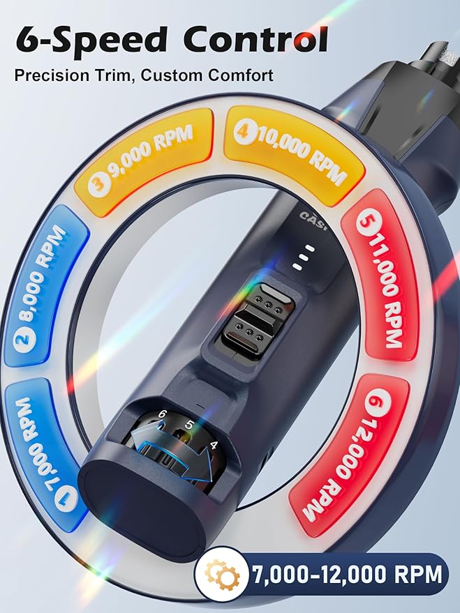 • 【6-Speed Control for Custom Comfort】Adjustable speeds from 7,000 to 12,000 RPM allow you to tailor grinding power based on your pet’s nail size and hardness. Use higher speeds for quick shaping, and lower speeds for precise work near the quick, reducing the risk of discomfort or bleeding. Skip the groomer bills—get smooth, salon-quality results at home with Casfuy dog nail grinder.